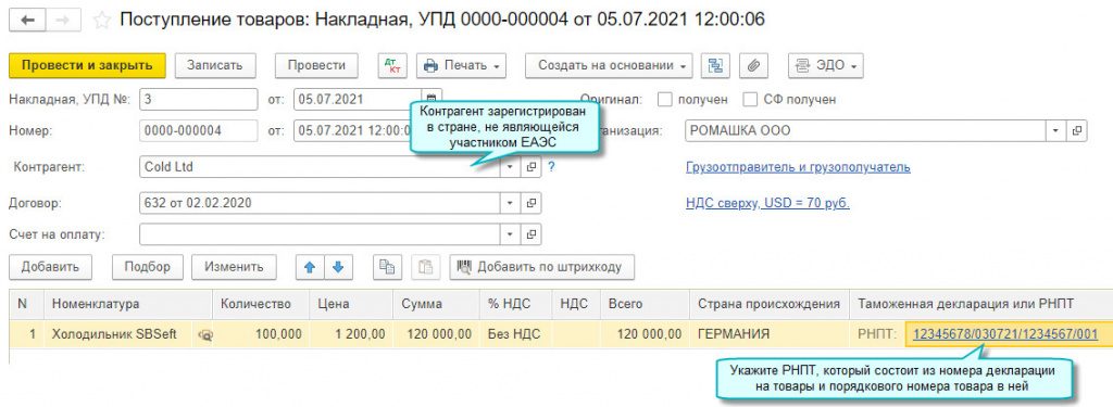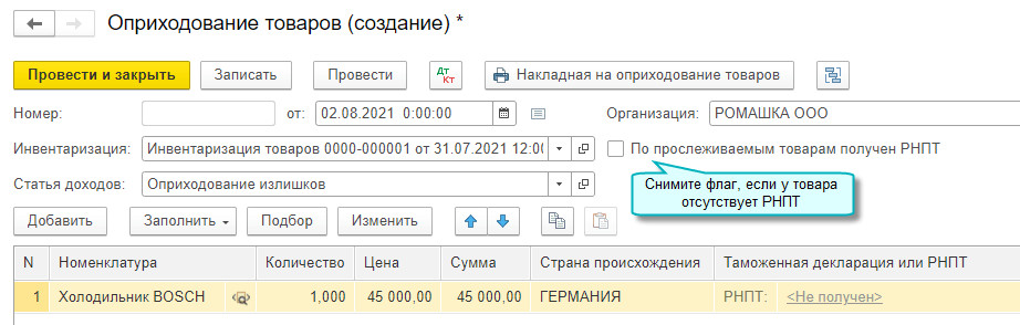 Дальнейшие действия по получению и оформление записи РНПТ производится в том же порядке, как при получении РНПТ на существующие остатки товара.