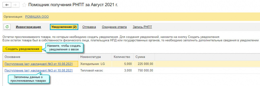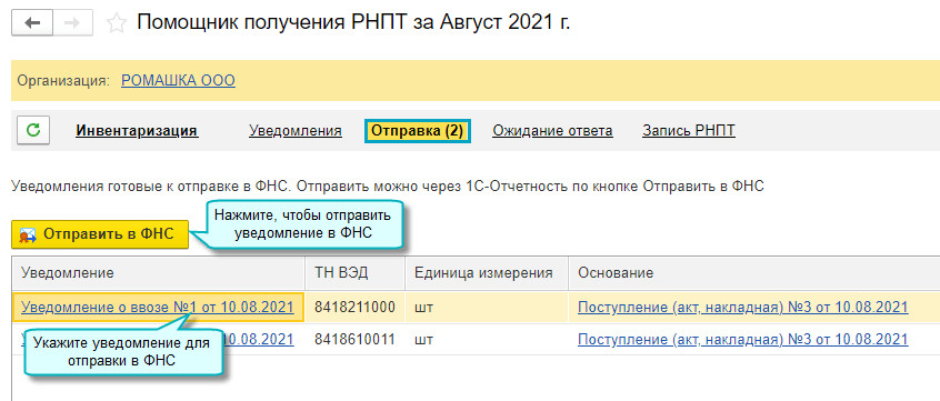 Чтобы получить РНПТ, необходимо создать «Уведомление об остатках прослеживаемых товаров» и отправить документ в ФНС.