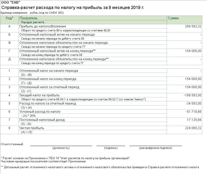 Расчет отложенного налога по ПБУ 18/02 без разниц