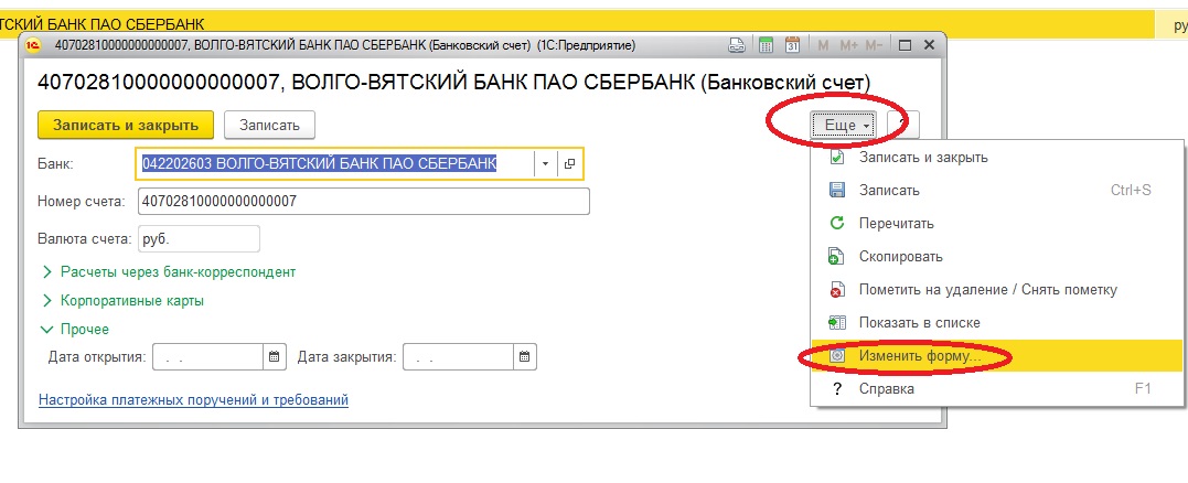 - Откройте раздел «Банковские счета», кликните на любой счет и откроется форма для его редактирования.