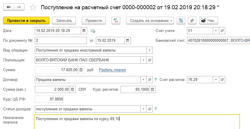 - В соответствии с Положениями по бухгалтерскому учету 3/2006 пунктам четыре и пять, бухучет должен осуществляться в рублях. Утилита проведет конвертацию валюты по курсу дня выполнения транзакции – на 19 февраля 2019года.