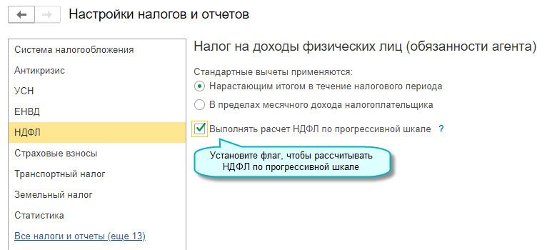 В 1С:Бухгалтерии 8 начиная с версии 3.0.88 появилась возможность рассчитывать налог на доходы физических лиц по прогрессивной шкале.