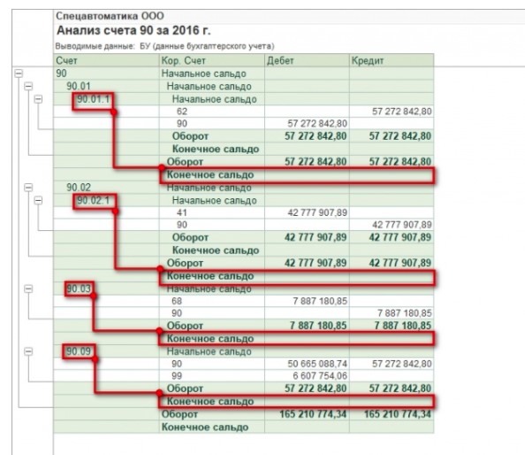 После проведения операции будут сформированы стандартные бухгалтерские отчеты для счета 90 и 91.