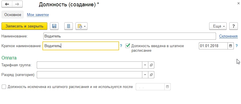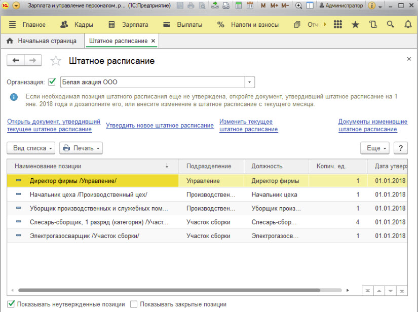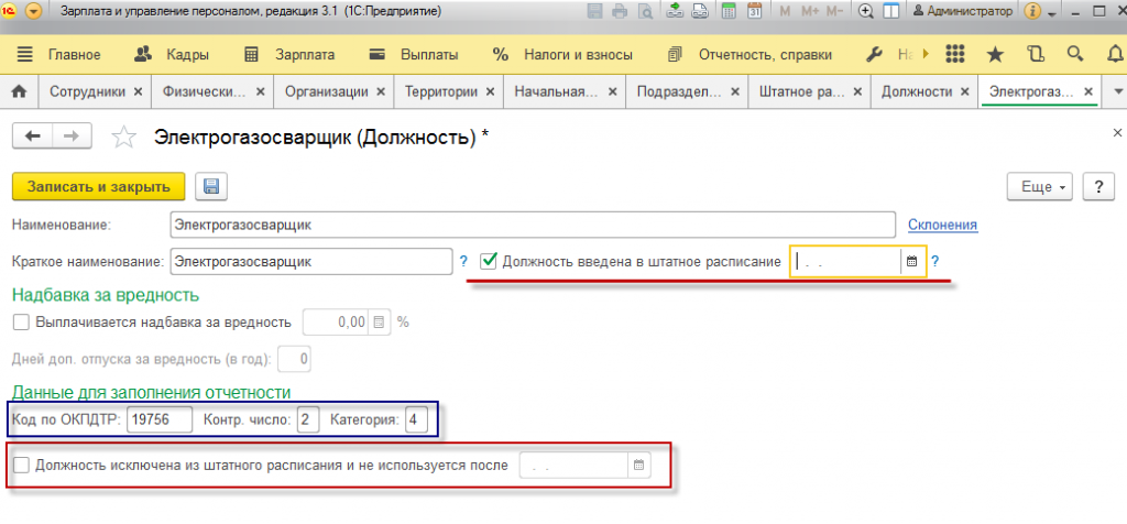 Работа в программе ЗУП с должностями