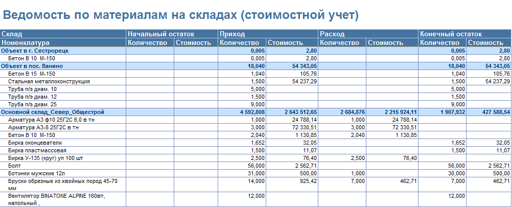 Учет материалов в строительной организации