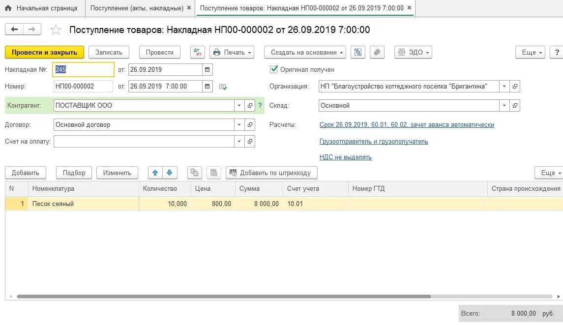 Практически ничем не отличается учет поступления материальных и товарных ценностей необходимых для обслуживания коттеджного поселка от поступления в КО: