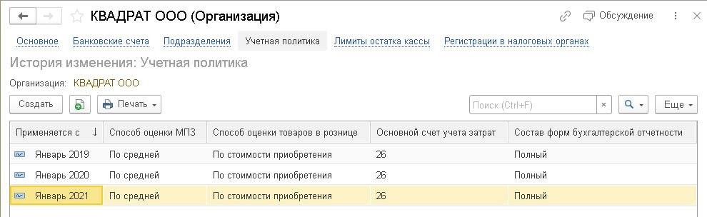 Применение и изменение учетной политики в 2021 году