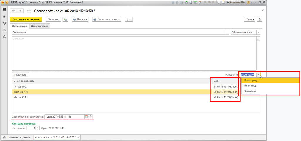 - согласование (файлов, вопросов, документов) - производится с одним или несколькими сотрудниками;