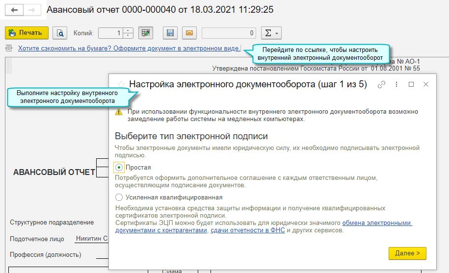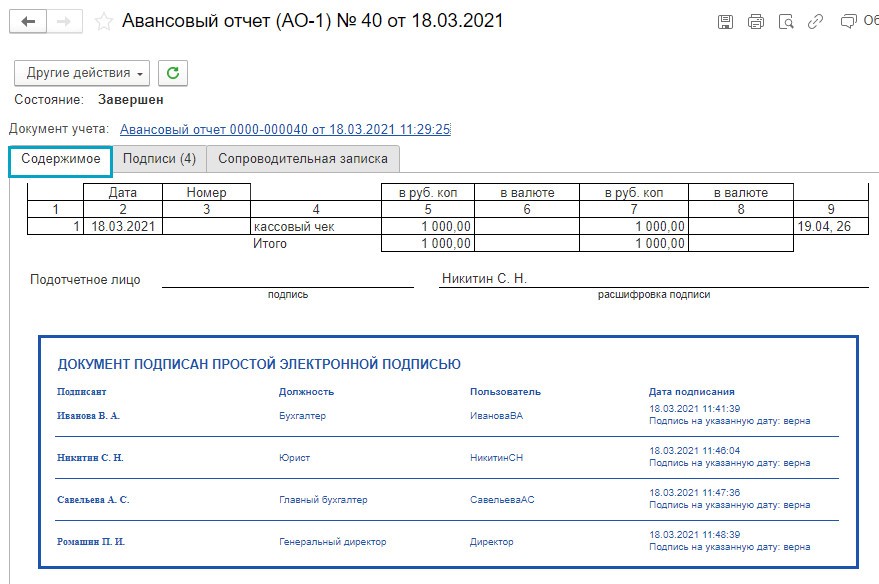 Существующая программа «1С:Бухгалтерия», с версии 3.0.92, содержит возможность полного оформления всех внутренних документов предприятия в электронном формате, используя для их заверения электронную подпись или специальную усиленную квалифицированную подпись.