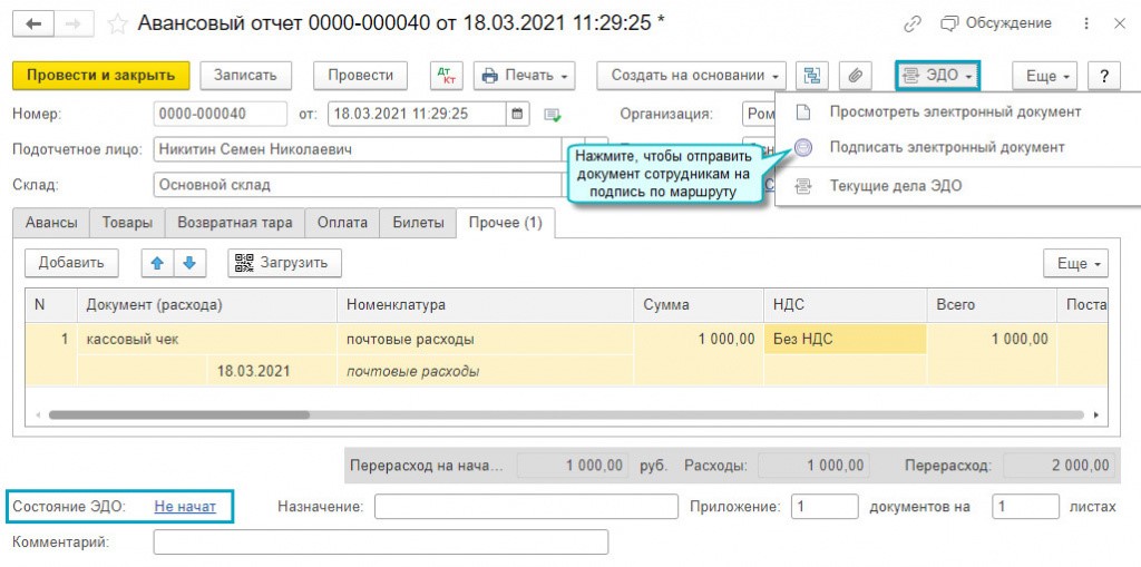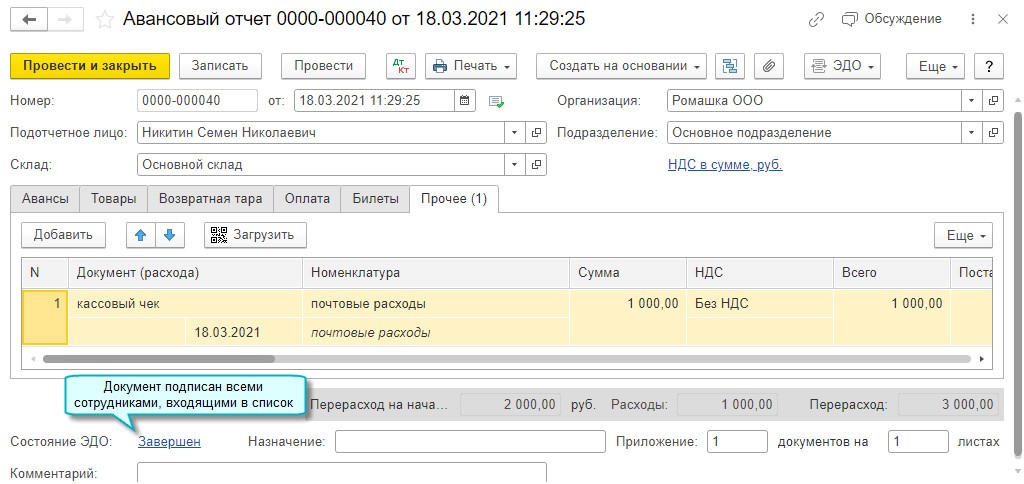 - авансовый отчет;