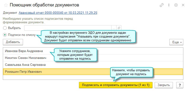 Внутренний оборот документов в электронном виде можно настроить из печатных форм существующих документов.