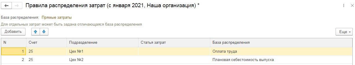 При этом некоторым предприятиям необходимо распределение затрат одного цеха относительно оплаты труда, а другого по плановой себестоимости производства.