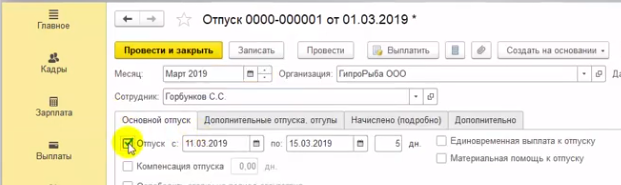 На закладке основной отпуск, необходимо снять установленный по умолчанию флаг - отпуск.